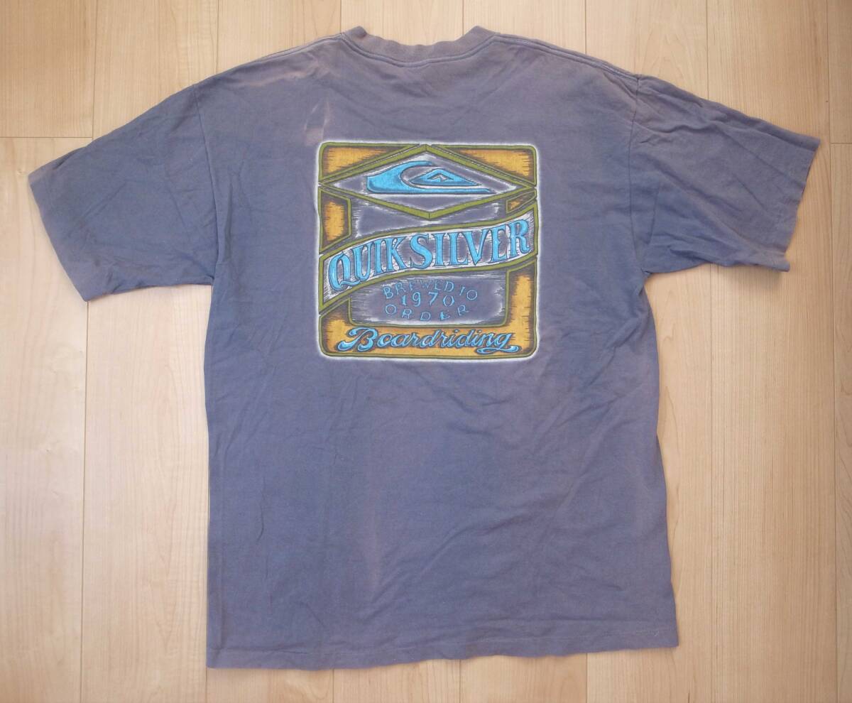 > 90s QUICK SILVER クイックシルバー 両面プリントTシャツ L グレーネイビー系 USA製 シングルステッチ ビンテージ SURF