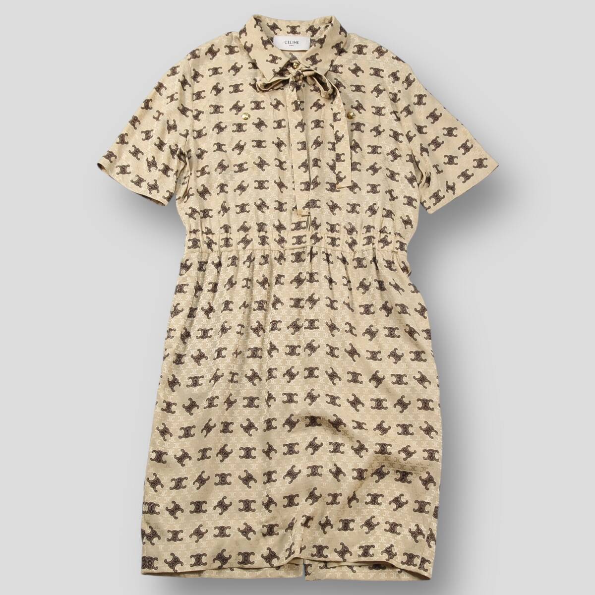 - CELINE by Hedi Slimane 23SS ラヴァリエール ドレス シャイニーマットシルク 2R61G812T.03ON 40 トリオンフ ボウ タイ リボン ワンピース