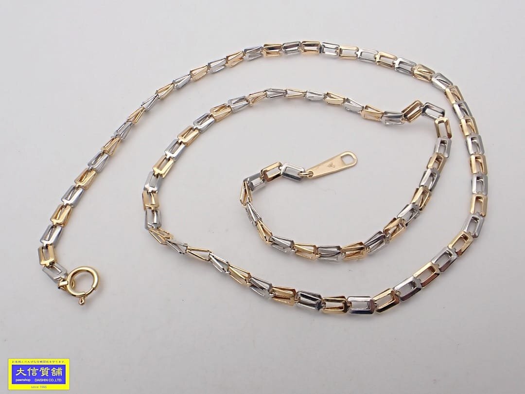 > K18 Pt850 イエローゴールドプラチナ デザインネックレス 40cm 7.67g 中古A- 【送料無料】 C-9535