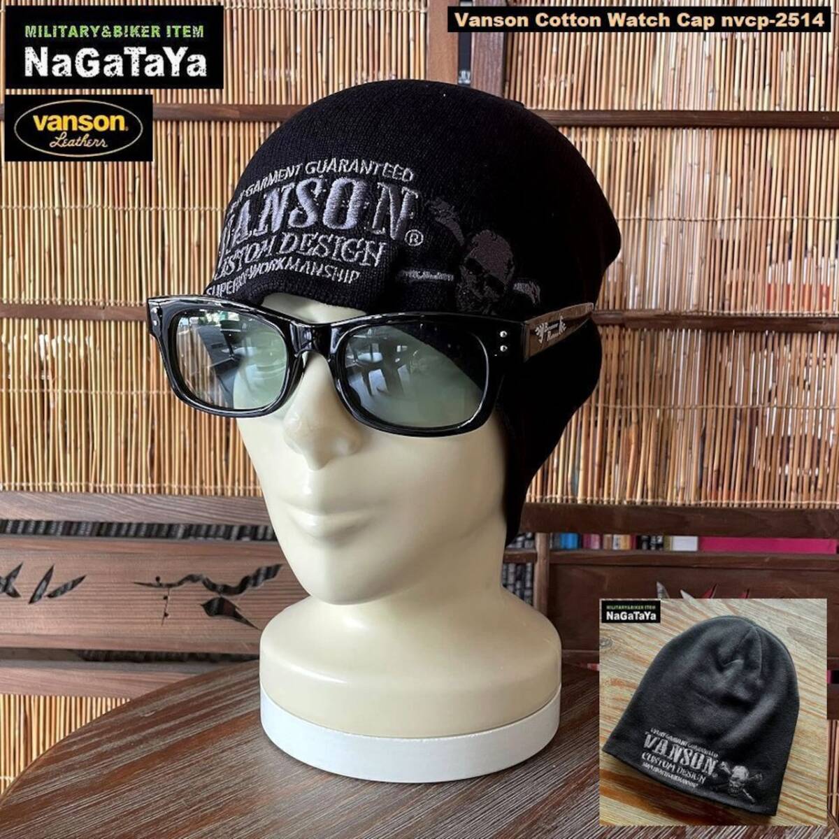 > VANSON バンソン ロゴ刺繍 コットン ワッチキャップメンズ ニット帽 ブラック×グレー フリーサイズ NVCP-2514 バイカーギア