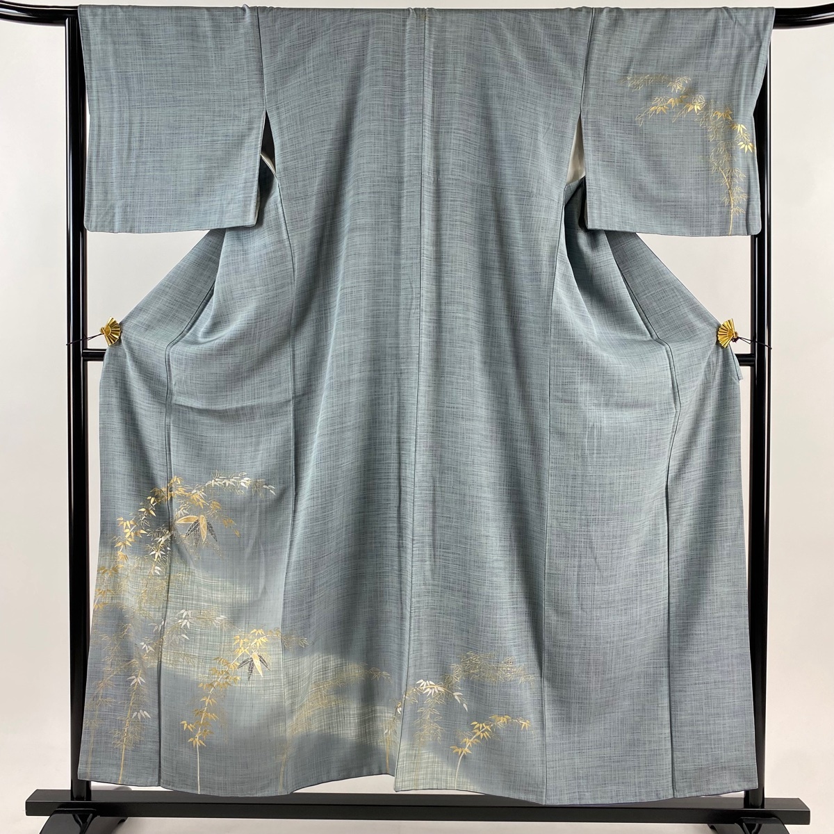 - 訪問着 身丈156.5cm 裄丈65cm M 袷 竹 金銀彩 青灰色 正絹 秀品 一つ紋 【中古】