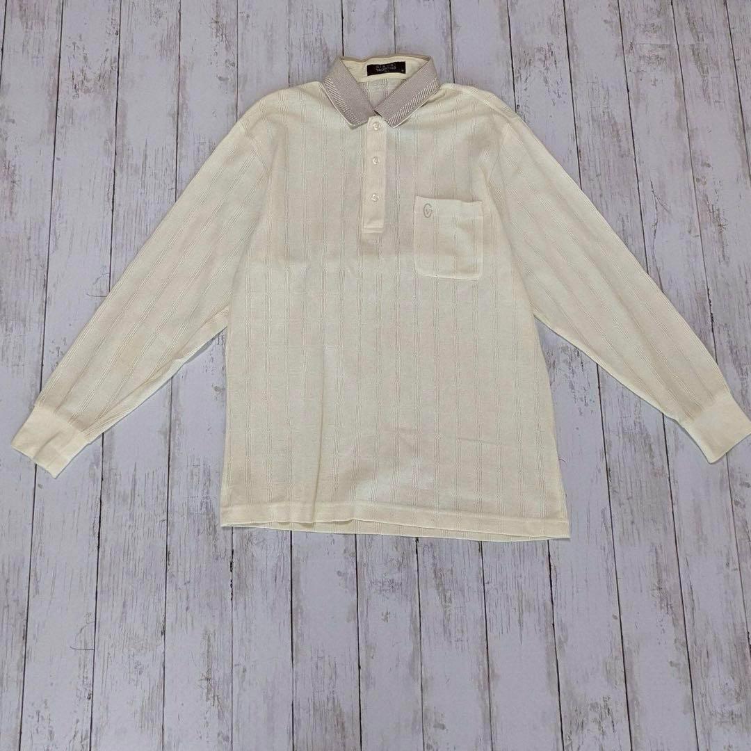 - ジャンニバレンチノ 長袖 ポロシャツ M ハーフボタン ストライプ