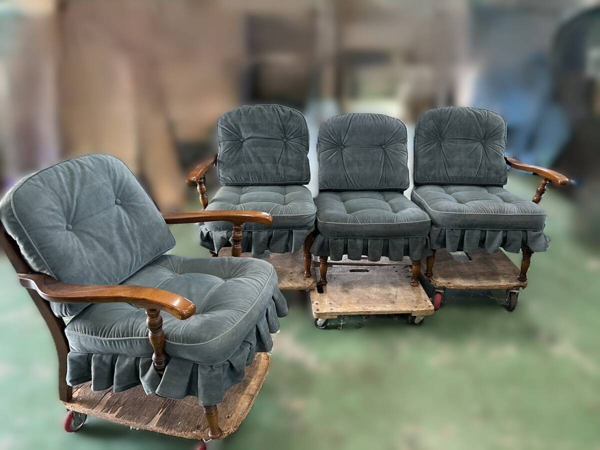 - [250630-3M]【ジャンク品】《直引き限定♪埼玉県所沢市》チェア 飛騨産業 HIDA キツツキマーク 応接椅子 4脚セット 難有