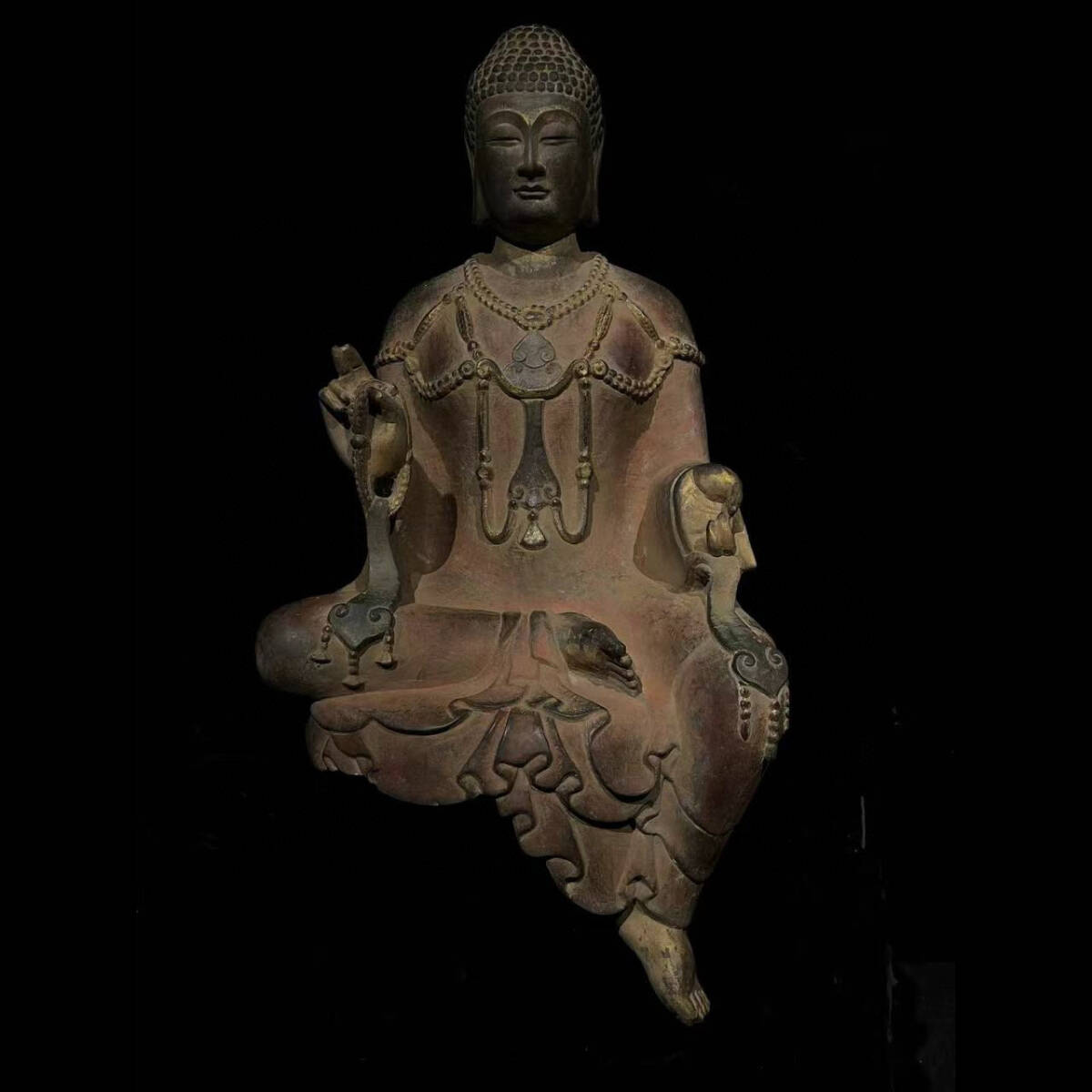 > 多宝閣■201576 彫刻品 【ブルーストーンで彩色された座像仏】 中国骨董 時代物 本物 珍品旧蔵 伝世家珍 孤品
