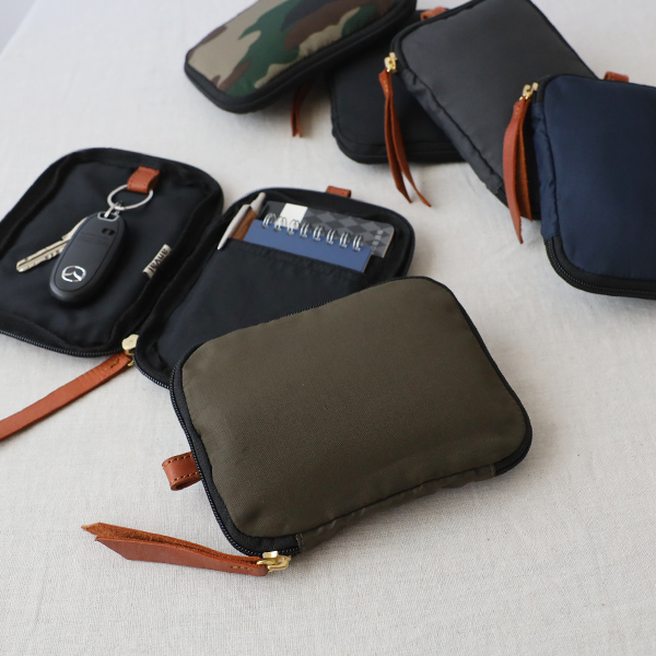 - 新作 Mサイズ クッションナイロン キーケース カードケース キーリング 牛革レザー ポーチ 軽量 マルチポーチ S09C
