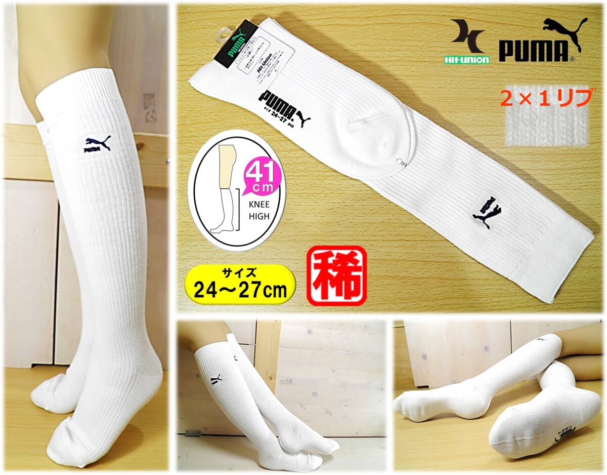 - 【未使用★レッグウェア】日本製◆Hit Union◆PUMA◆くっきり 2×2リブ◆白リブ ハイソックス◆24-27cm◆41cm丈◆稀少A◆