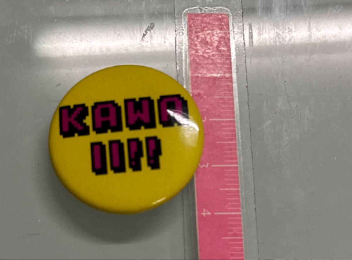 - 「KANA!!!」と書かれた黄色の缶バッジ