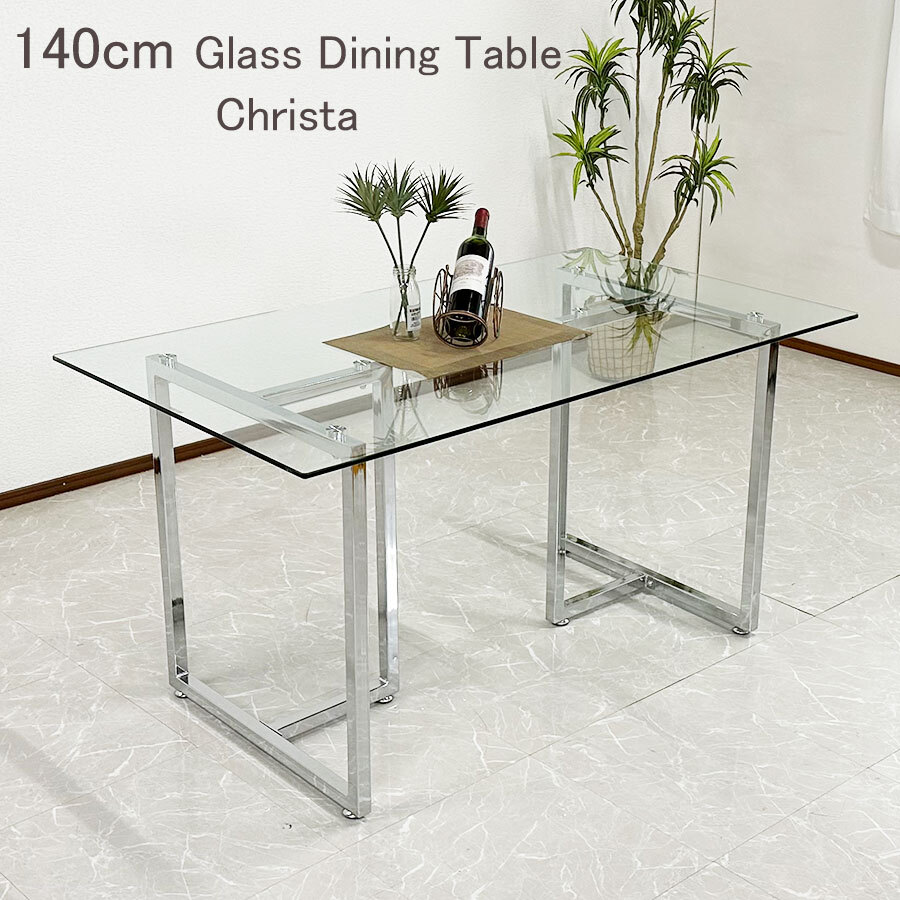 - 【新品】ダイニングテーブル 幅140cm ガラステーブル ガラス天板 クリスタル テーブル アイアン脚 食卓テーブル クリスタ ※送料無料※