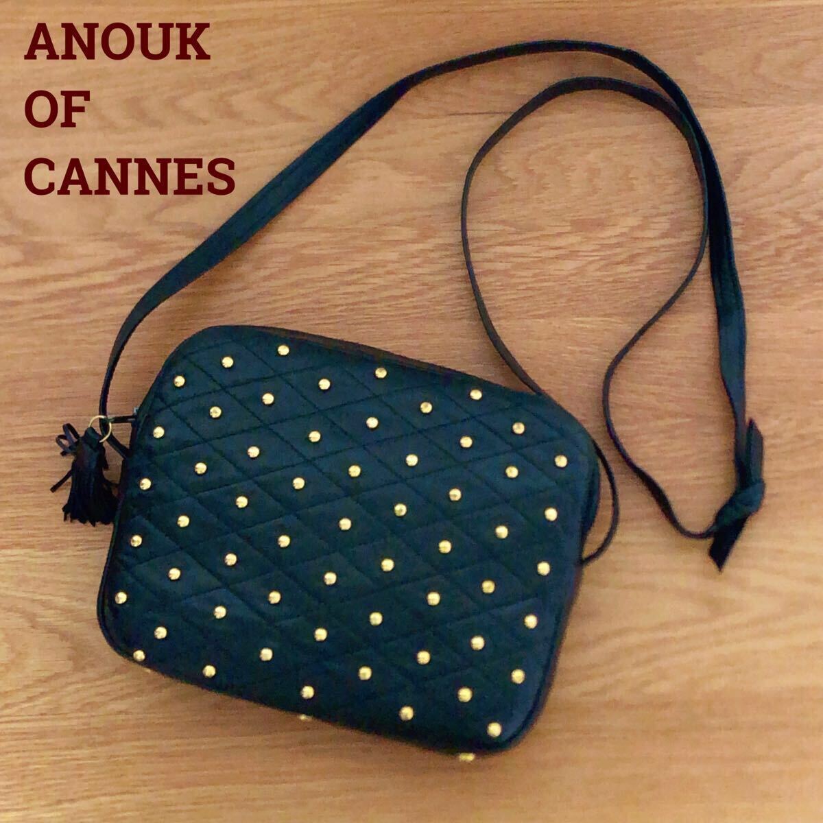 > ANOUK OF CANNES フランス製 キルティング ラムスキン キルティング ショルダーバッグ メタル スタッズ ドット ヴィンテージ 革バッグ 黒