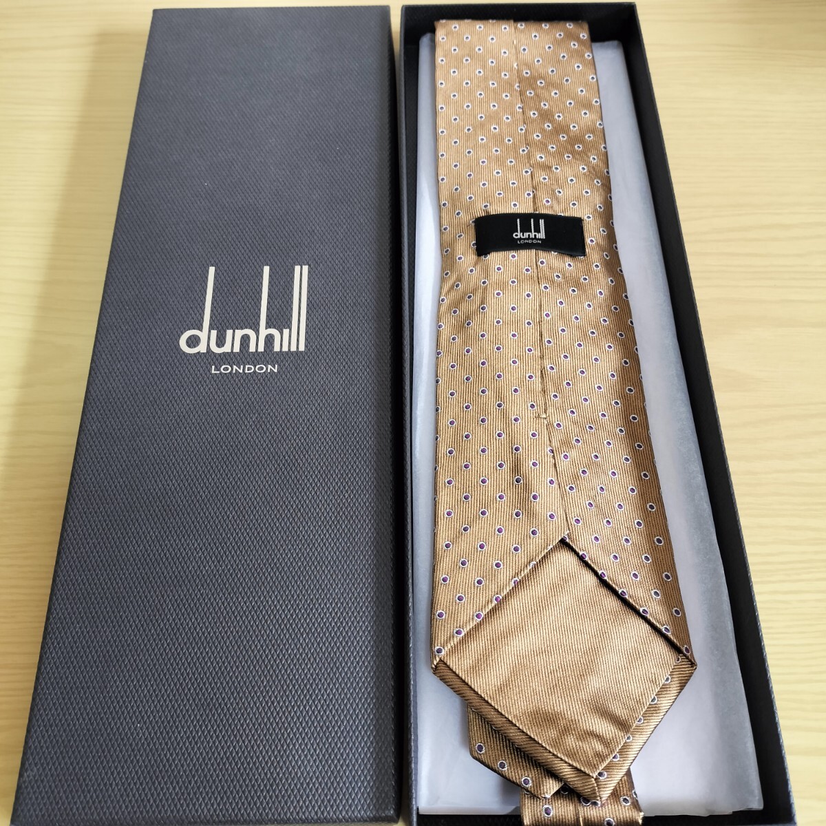 - ダンヒル(Dunhill)茶色ラベンダーミクロ丸ドット模様ネクタイ