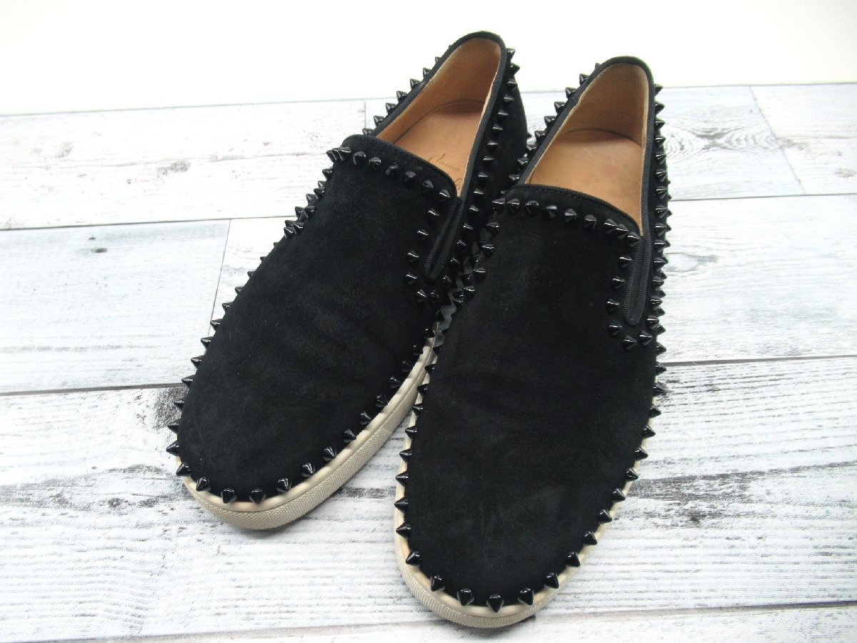 - ★【B送900円】2403 Christian Louboutin クリスチャンルブタン メンズ スリッポン スタッズ スニーカー スエード ブラック 39