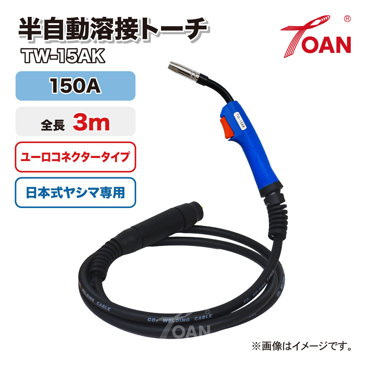 - 半自動溶接機 CO2トーチ 日本式 ヤシマ 150A 全長:3m TW-15AK ユーロコネクター式 ( 溶接機適合機種 代表例: WM-210MO MIG210S 海外溶接機)