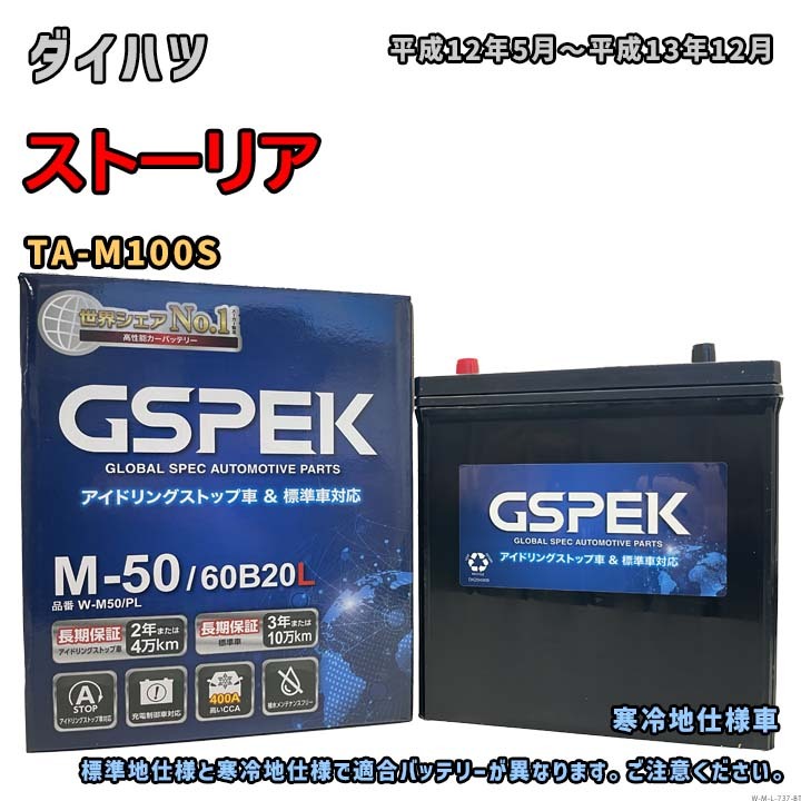 - バッテリー GSPEK W-M50/PL ダイハツ ストーリア TA-M100S 平成12年5月~平成13年12月 対応 M-42 互換 737