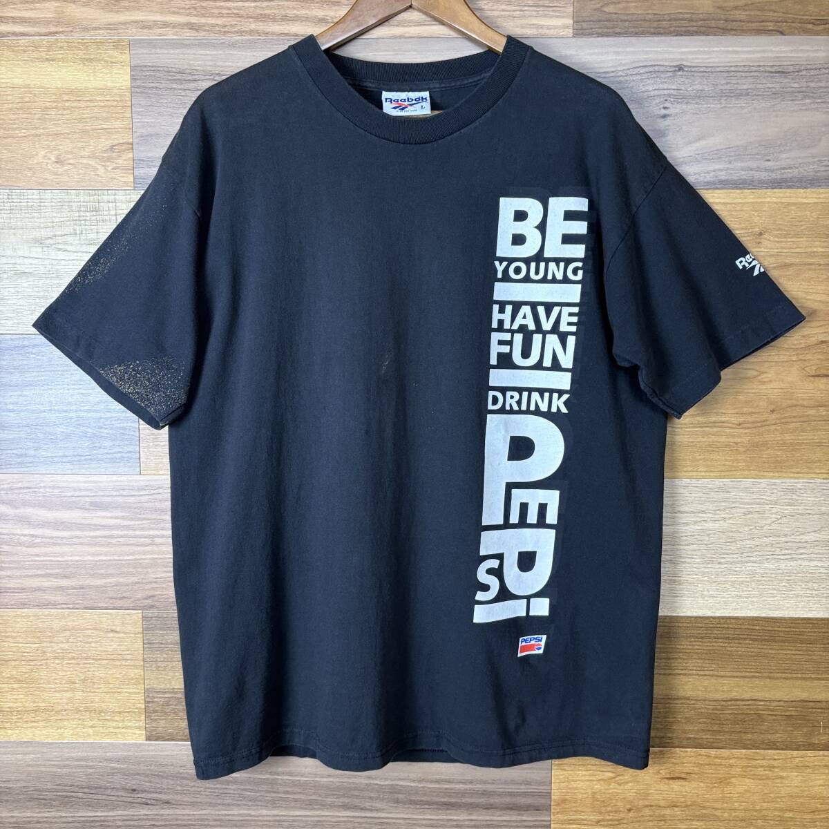 > 90s Reebok×Pepsi ダブルネーム T-sh Tシャツ サイズ メンズ L 袖シングルステッチ 90年代 VINTAGE ビンテージ アメカジ 古着 r25090460