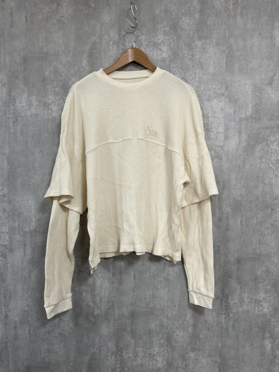 > MONO-MART モノマート ワッフル生地 重ね着風 刺 ロング カットソー sizeL/アイボリー ◇■ メンズ