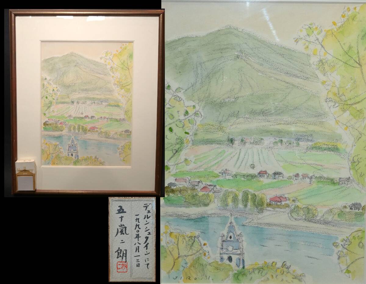 > 真贋保証■五十嵐二朗■ 水彩『デュルンシュタインにて 1990年8月13日』共シール 額装 須賀川市ゆかりの画家 新潟県佐渡生 一陽会 風景画
