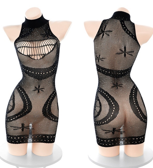 - セクシー 誘惑 ピカピカ コスプレ衣装 舞姫 タイツ ワンピース ミニスカート パジャマ ナイトウエア 黒