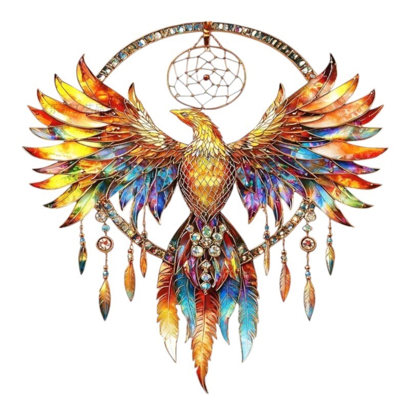 - 【フェニックス カラフル】アクリルプレート 飾り サンキャッチャー チェーン付き オブジェ お洒落 壁や窓辺の飾りに◎
