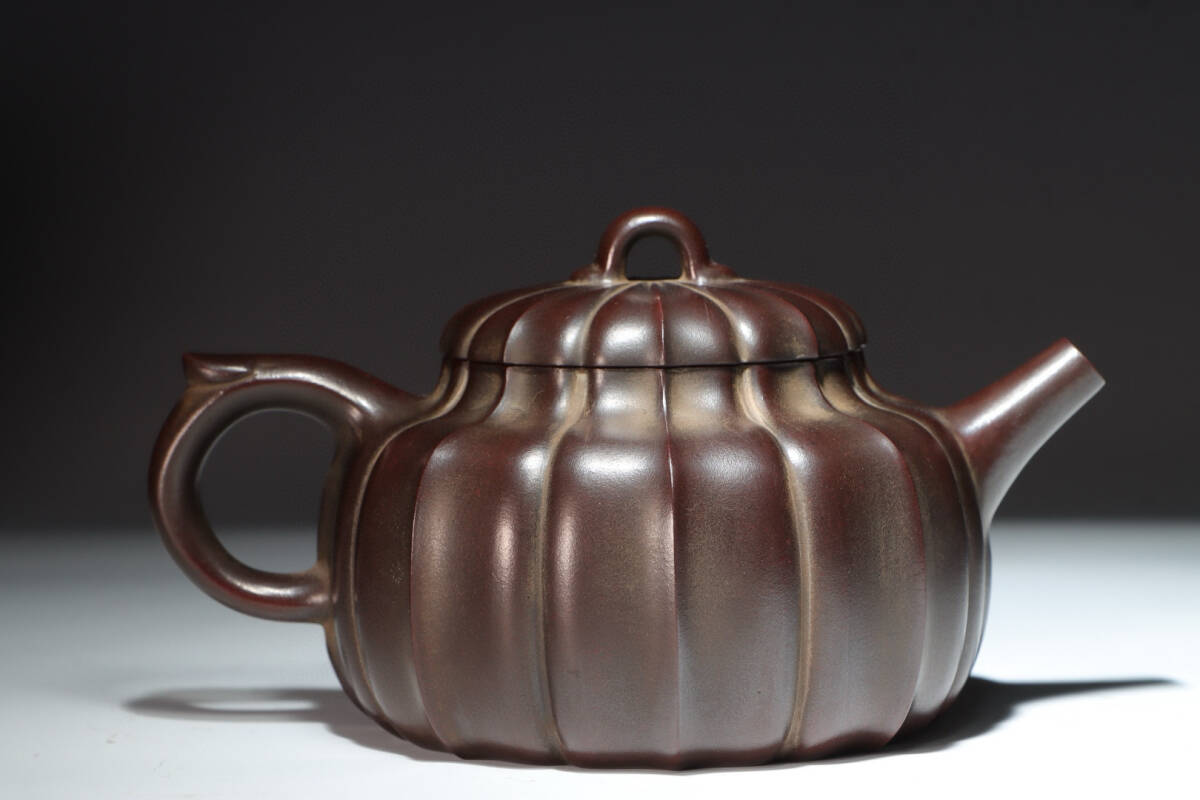 - 『古』【底款・ 許斗侯 頸紋德鐘壺】容量約300cc 重量227g 朱泥 段泥 煎茶道具 急須 単孔口 唐物 孟臣 紫砂壺 紫砂壷 茶壷 茶壷 明代/清代