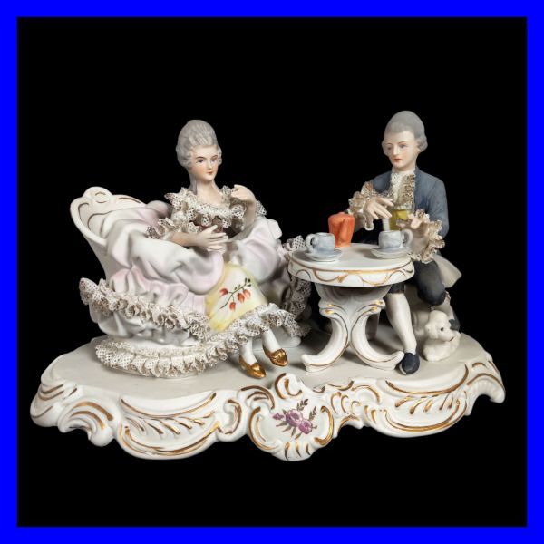> ●貴族カップル陶磁器人形 貴婦人ドレス レースドール フィギュリン ロココ調 中世西洋アンティーク調 置物 オブジェ フィギュア Z3821