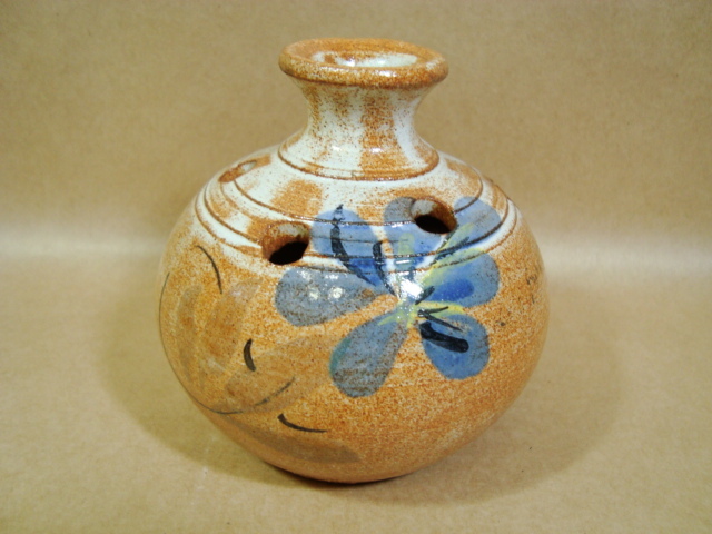 - フランス製 ヴィンテージ★ピケ・フルール 花瓶 花器/素焼き ハンドペイント花柄★H10.5cm