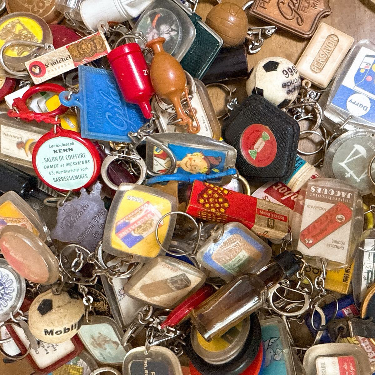 - P609 100個 フレンチキーホルダー フランス ヴィンテージ ビンテージ アンティーク 大量 まとめ まとめ売り 処分 雑貨 ブルボン 卸売 小物