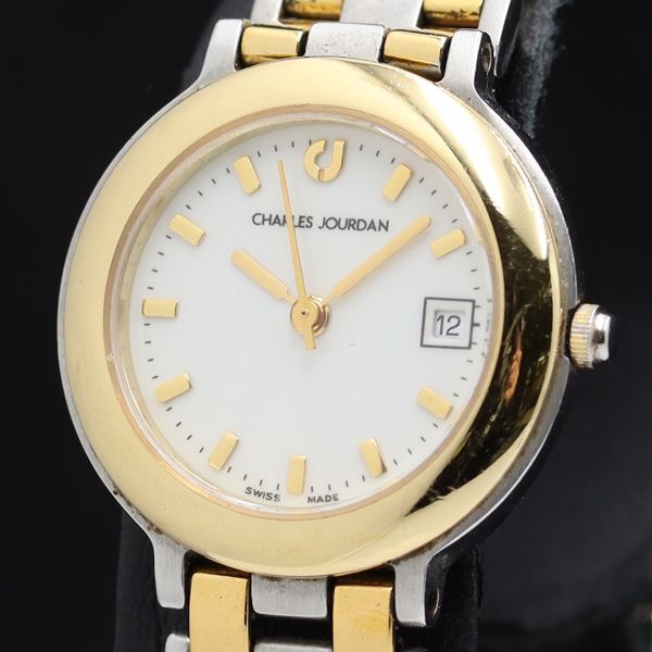 - 稼働 シャルルジョルダン 15.23 デイト QZ ホワイト文字盤 レディース腕時計 TKD 2000000 NSK