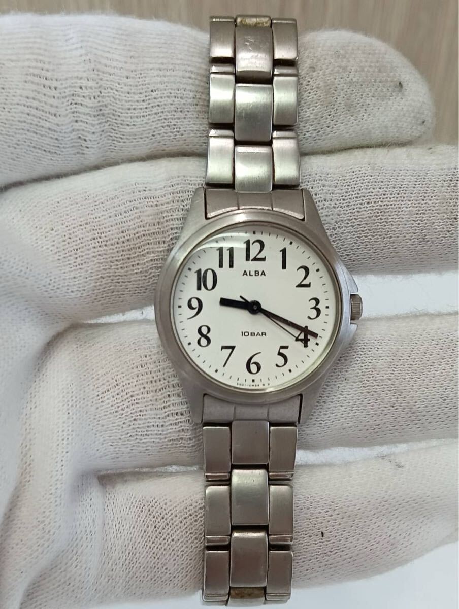 > 【中古品】SEIKOセイコー ALBAアルバ 腕時計 クオーツ V501-0EC0 シルバー ステンレス 白文字盤 時計 現状品