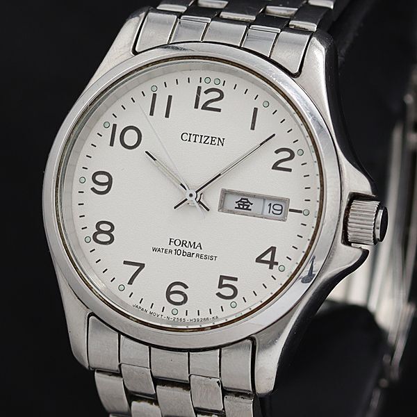 > 稼働 良品 シチズン フォルマ 2565-H22889CK QZ 白文字盤 デイデイト メンズ腕時計 OSW 2000000 NSK