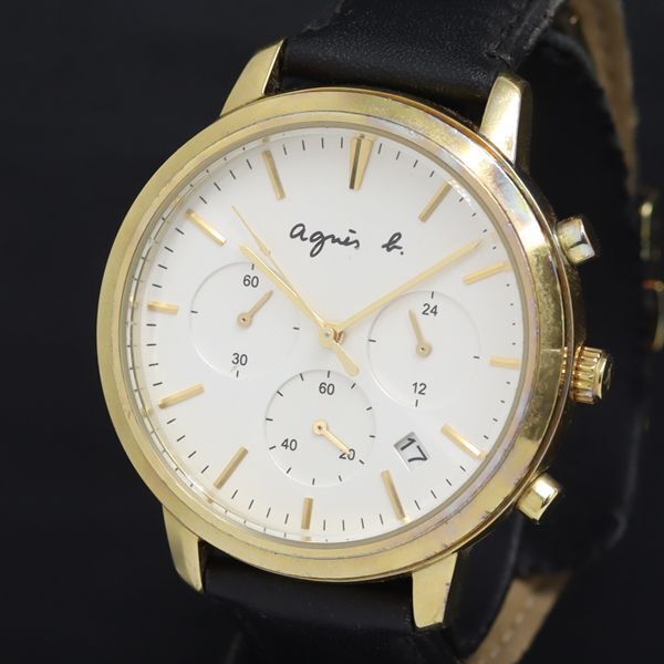 - 稼動 QZ 良品 アニエスベー クロノ VD53-KWB0 白文字盤 デイト レディース腕時計 KRK 2000000 NSK