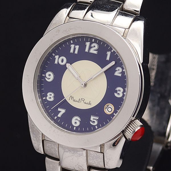 - 稼働 良品 モールラック QZ MR-2002 紺×アイボリー文字盤 デイト メンズ腕時計 ECT 2673000NKG