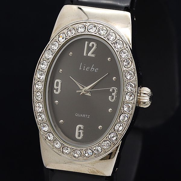 - 稼働 良品 QZ リエベ バングルウォッチ ダイヤベゼル オーバル グレー文字盤 レディース腕時計 OKZ 2000000