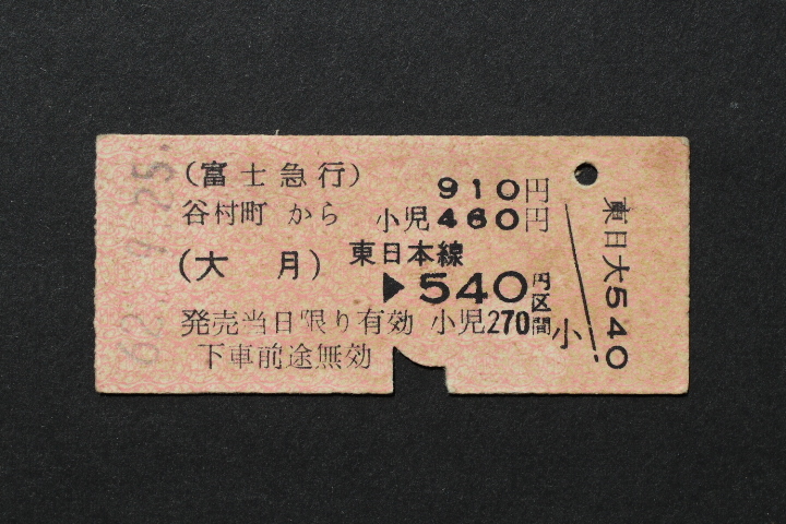 - 富士急行 乗車券 谷村町から910円 大月 540円