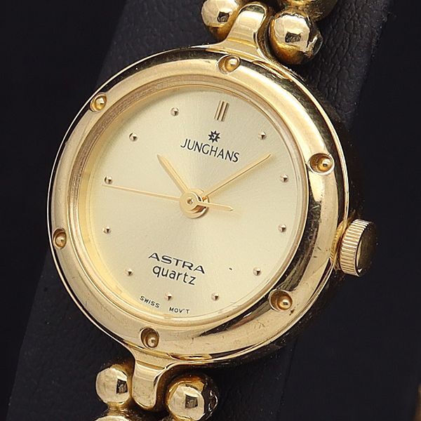 - 稼働 良品 ユンハンス QZ アストラ ゴールド文字盤 ラウンド レディース腕時計 NKG