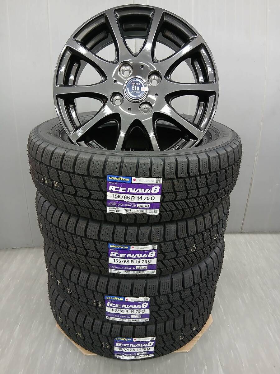 > 新品セット★Eta(グラファイトグレー)★14×4.5J+45 100-4H★グッドイヤーナビ8★155/65R14★ピクシス・デイズ・ステラ★G