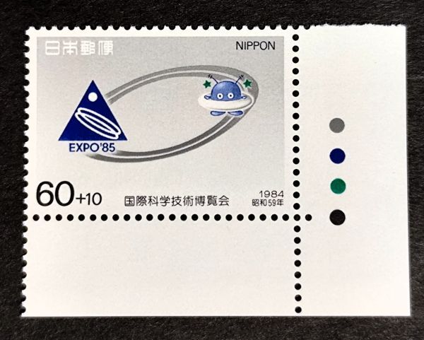 - [25091151]【国際科学技術博覧会記念】単片 寄付金 CMカラーマーク付「シンボルマークとマスコット」60円+10円 1984年発行 美品