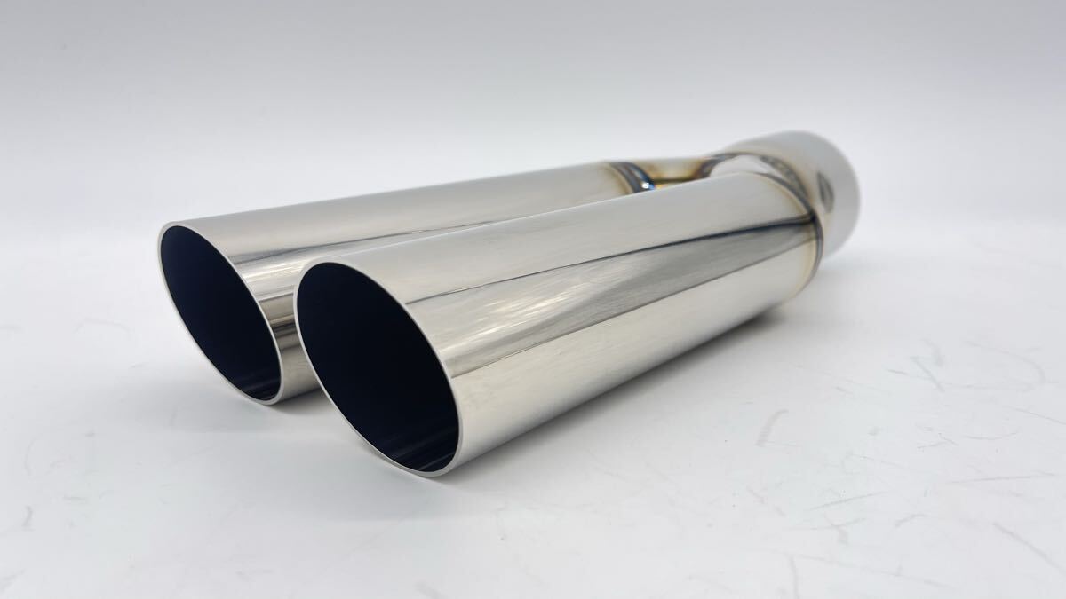 > ワンオフマフラーカッターデュアルマフラー出口15°スラッシュカットW50.8φ入口60.5φ サイズ変更も可能!