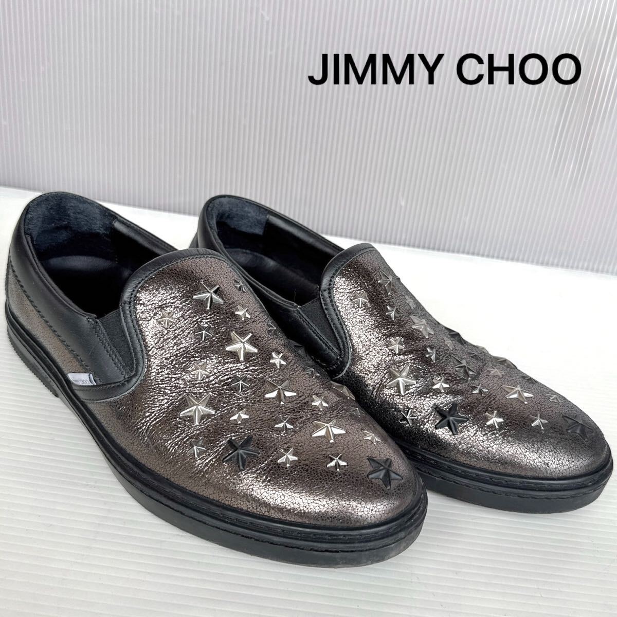 - JIMMY CHOO ジミーチュウ スタースタッズ ローカット スニーカー スリッポン モカシン 美品 メンズ 靴 フラットシューズ 42 ブラウン 本革