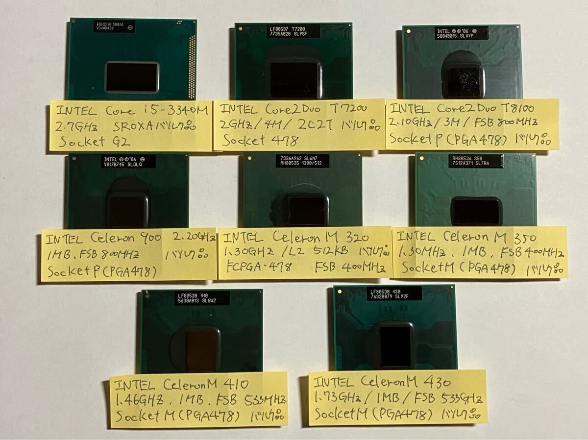 - Intel製ノートPC用CPU 詰め合わせ(Core i5-3340M、Core2DUO T8100、他計9種類) バルク品・ジャンク品