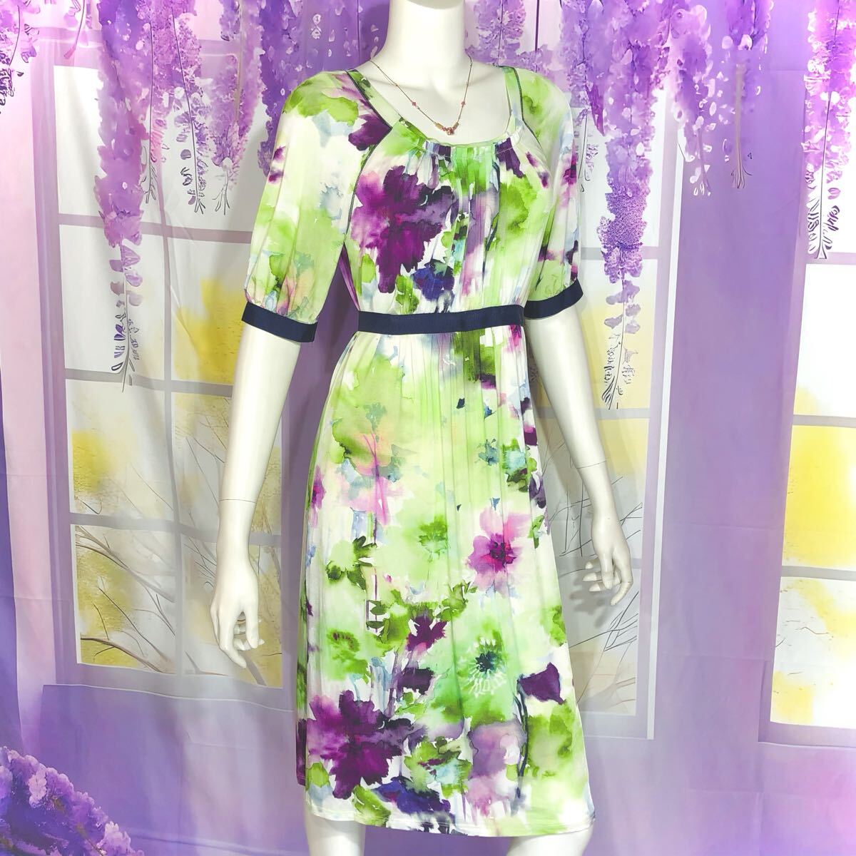 - Max Mara Studio ホワイトグリーンパープル配色ワンピース S