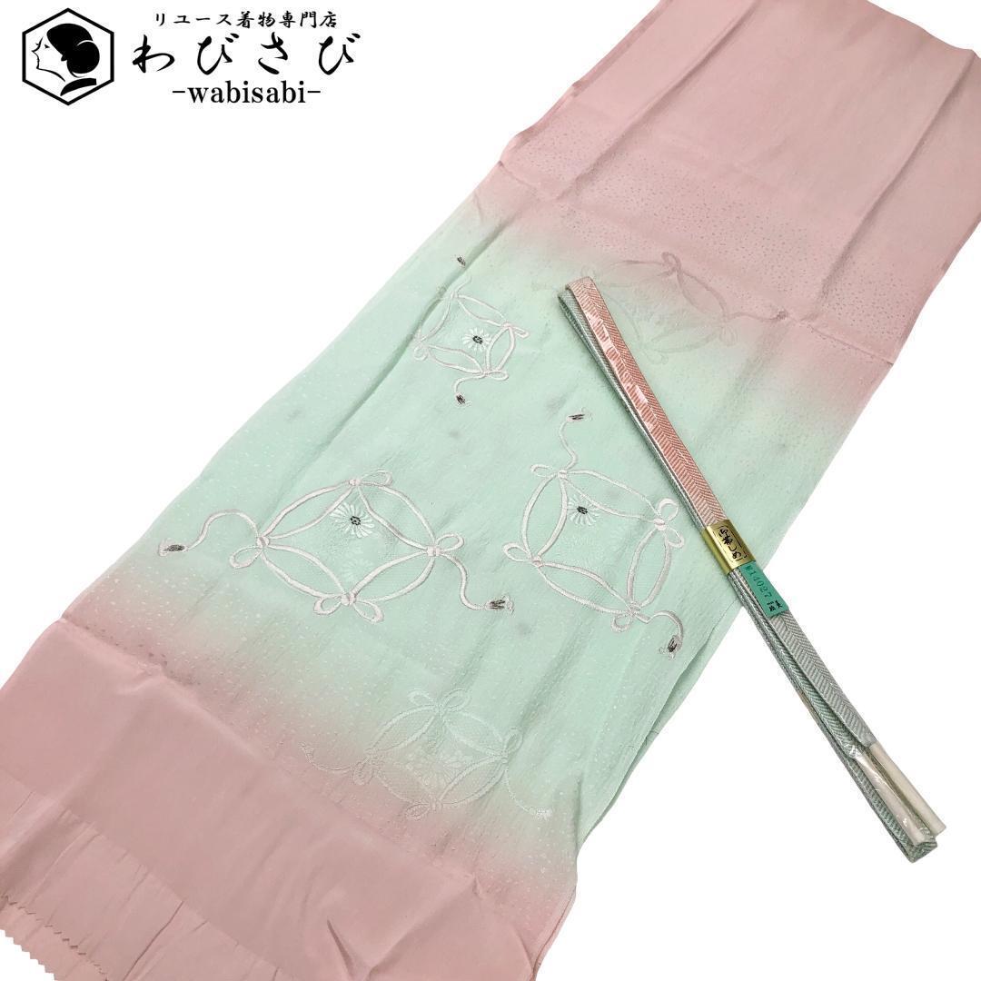 - 和装小物 帯締め 帯揚げ セット 正絹 刺繍 七宝 笹浪組 C-6459 着物 きもの kimono 和服 和装 中古 リサイクル着物 【送料無料】