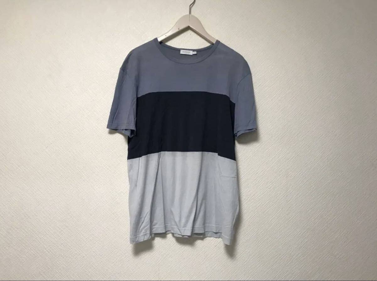 > 本物サンスペルSUNSPELコットン切り替えデザイン半袖Tシャツメンズサーフアメカジミリタリー青ブルー柄Lイギリス製イングランド