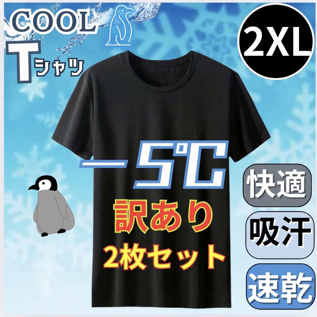 - 2XL Tシャツ 黒 接触冷感 ブラック カットソー トップス 半袖 ドライ 熱中症対策 無地 丸首 大きめサイズ メンズ スポーツインナー