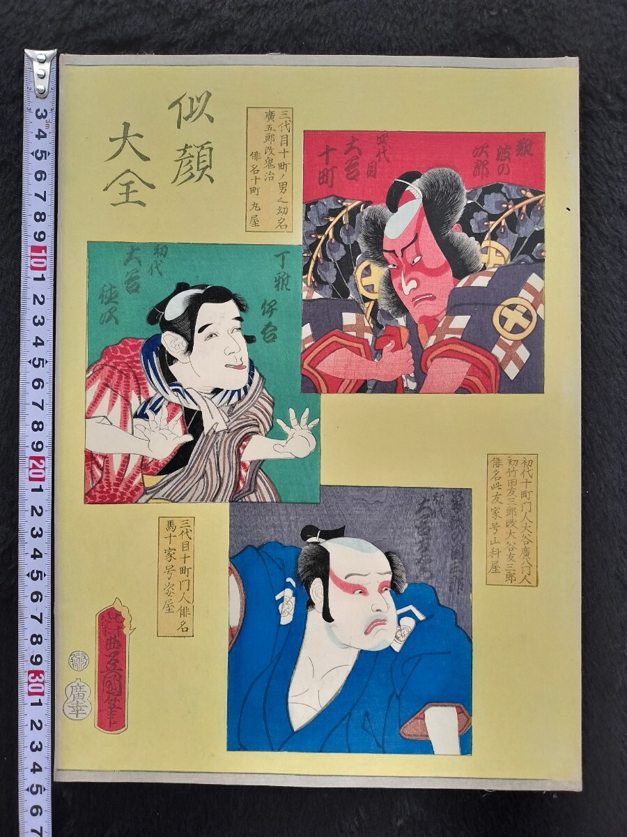 - 江戸期/真作 歌川豊国「似顔大全」本物浮世絵木版画 役者絵 歌舞伎絵 芝居絵 錦絵 大判 裏打ち 保存良い