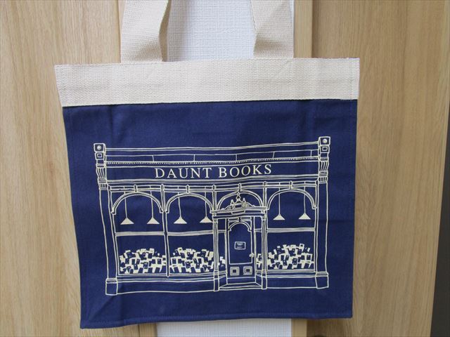 > 新品未使用 ドーントブックス(Daunt Books)トートバッグ(両面同一柄 ロンドンの書店)(紺コットン・イン・コンバージョン素材インド製LO84