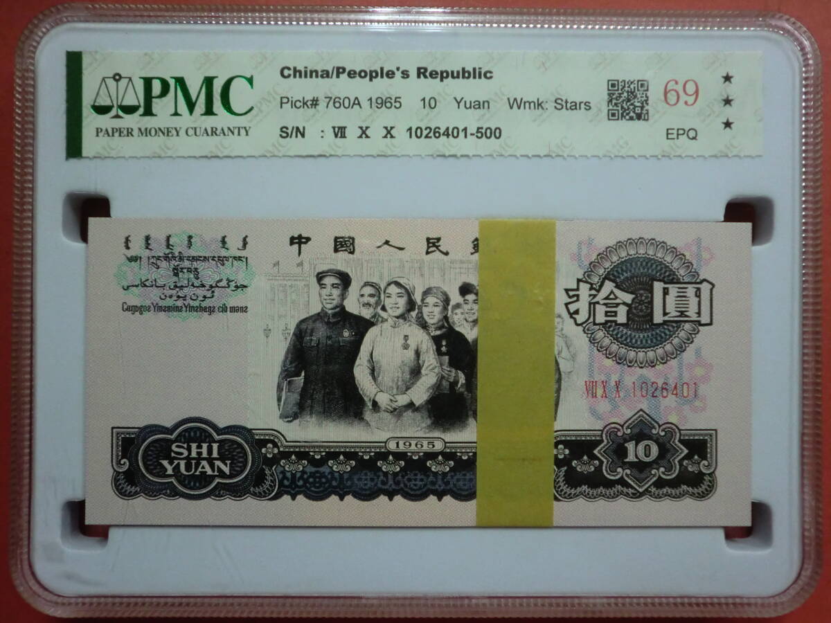 - 中国第三套紙幣【拾圓】 100枚PMCケース入りJ904 コレクション整理未鑑定品
