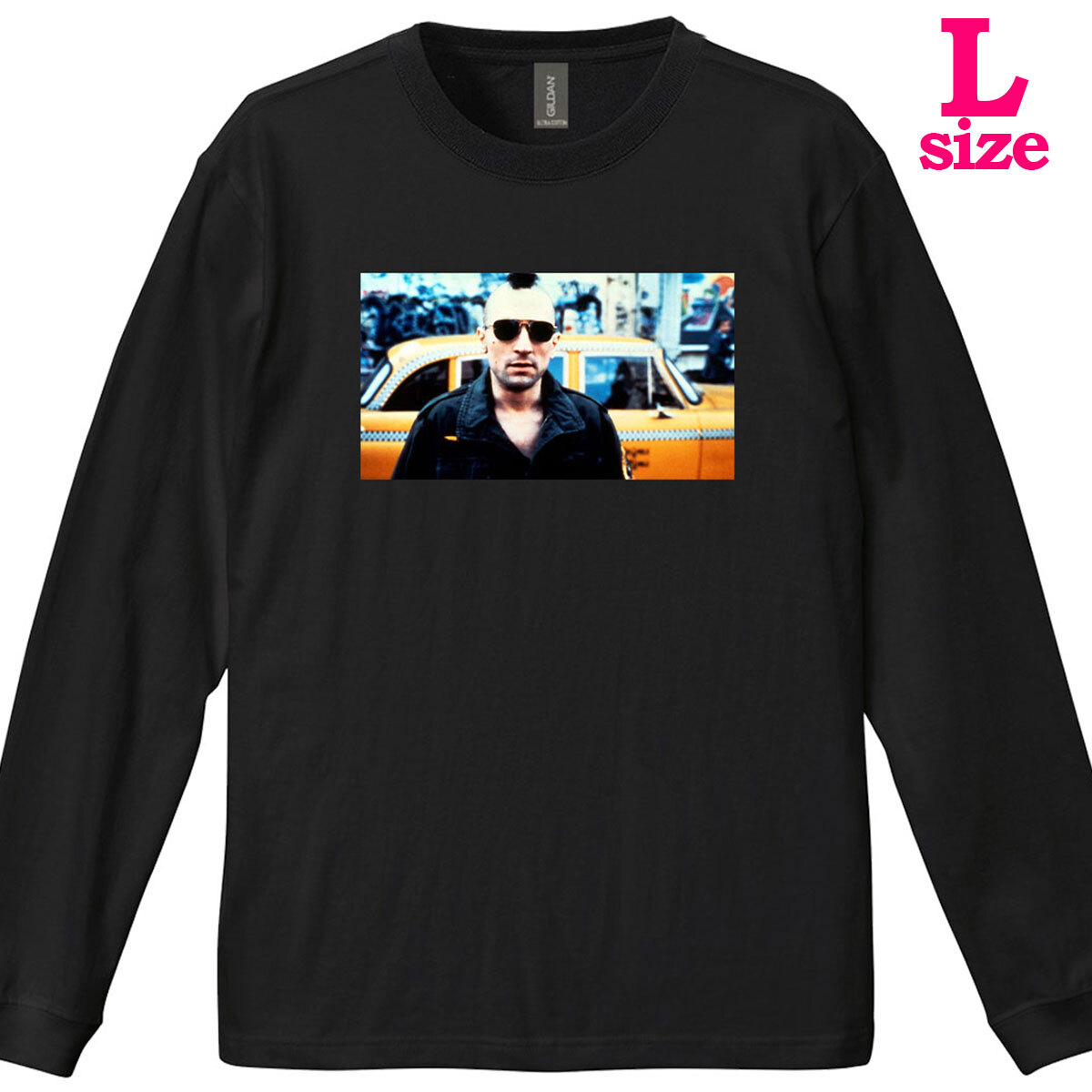 - タクシードライバー 柄 フォトプリント リブ付き 長袖 Tシャツ ロンT トラヴィス カジュアル 6.0oz コットン100% ユニセックス L