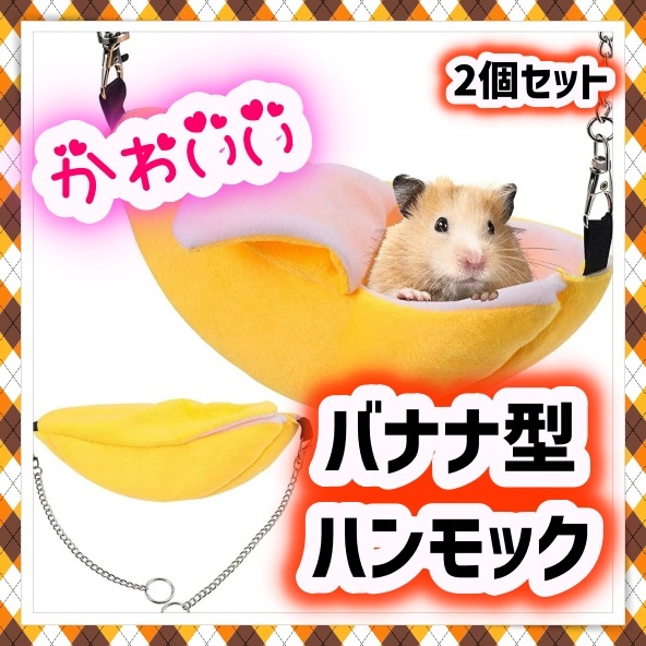 - 2個セット 小動物用 ハンモック バナナ型 ケージ用 ハウス 隠れ家 ベッド 寝床 フェモモンガ ハムスター リス 洗える ポーチ 癒される 可愛