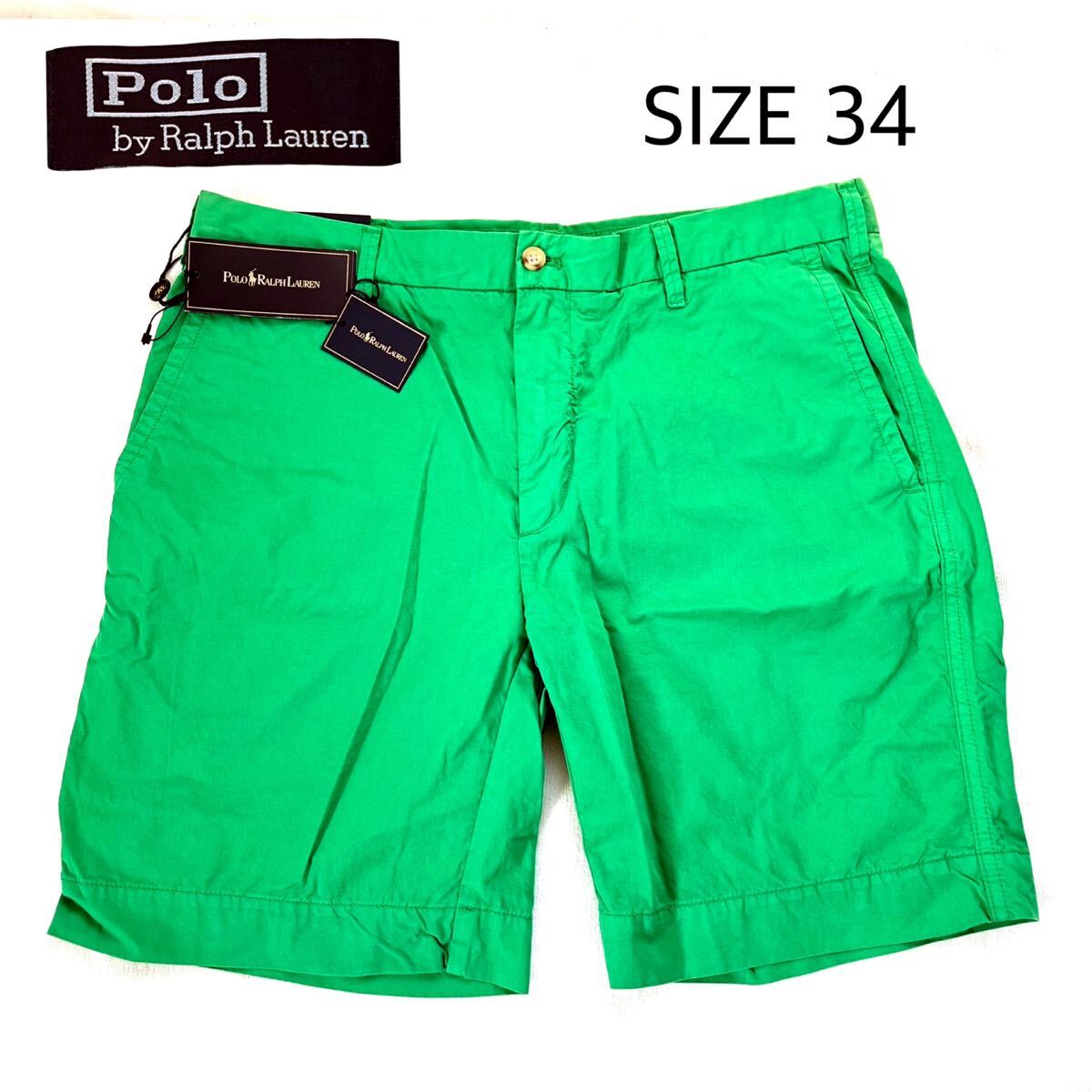 - 未使用 ポロラルフローレン POLO RALFRAULEN ショートパンツ タグ付き ハーフパンツ 半ズボン 緑 ストレートフィット SIZE34 メンズ