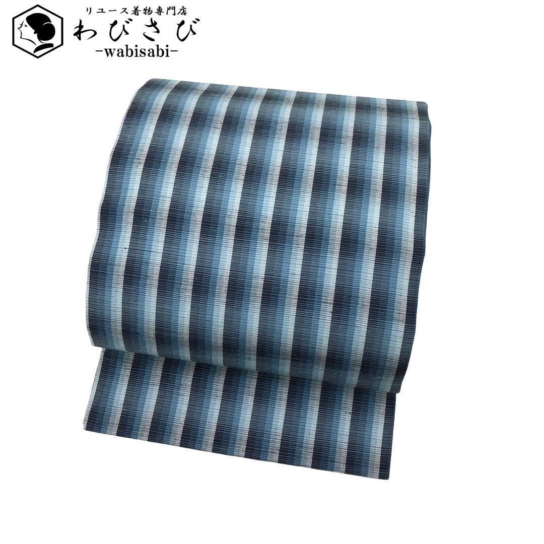 - 名古屋帯 紬 縦縞模様 青味のグラデーション O-4315 着物 きもの kimono 和服 和装 中古 リサイクル着物 【送料無料】
